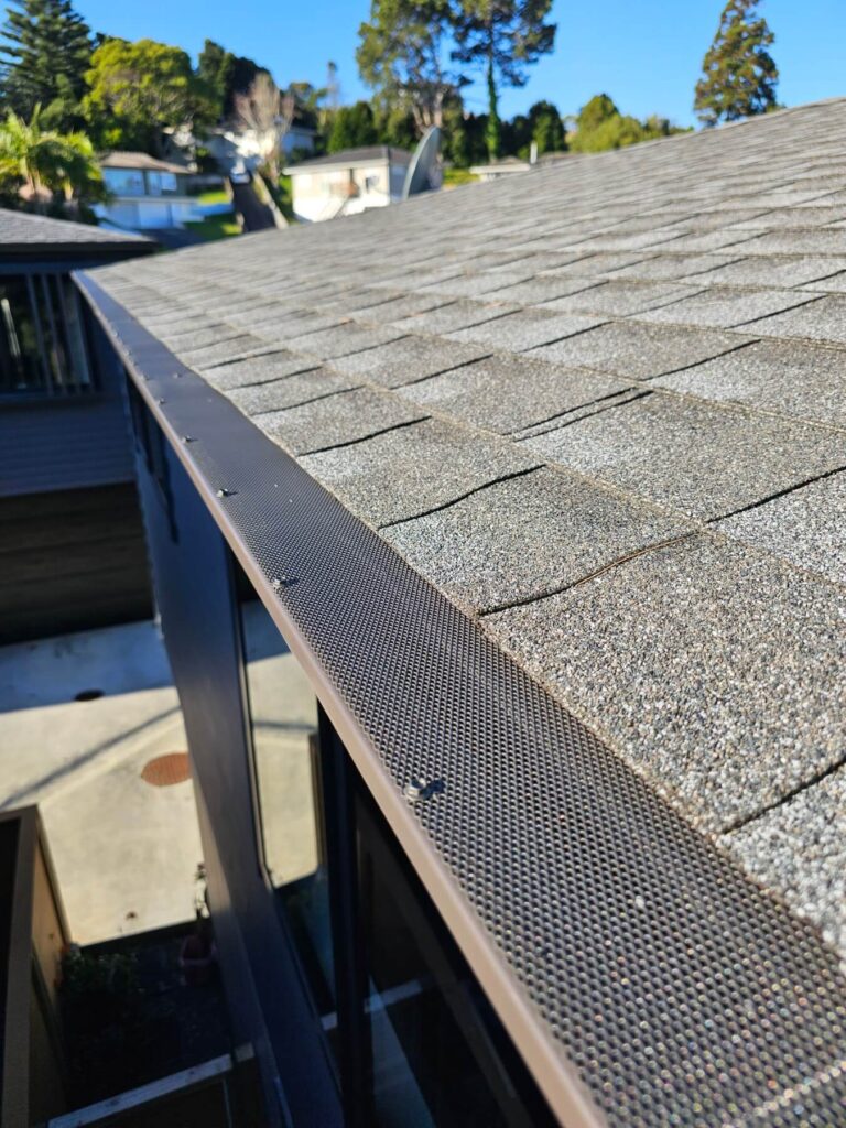 Gutter protection involves the installation of high-quality metal mesh, specifically aluminum and copper, on gutters and valleys. This mesh serves as a barrier, preventing leaves and debris from entering and blocking the gutters. It’s a permanent solution designed to ensure efficient water flow and protect against potential flooding.